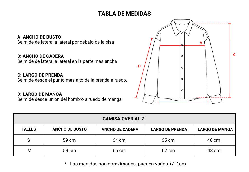 La Camisa Over Aliz es el básico oversize que no puede faltar en tu guardarropa. Fabricada por nosotras con algodón suave, es perfecta para todos los días, ya sea para trabajar, la oficina o para complementar tus outfits con estilo y comodidad. Su diseño amplio y confortable te acompaña en cada momento, sumando un toque relajado y moderno a tus looks diarios. ¡Descubrí la versatilidad de una prenda pensada para vos!