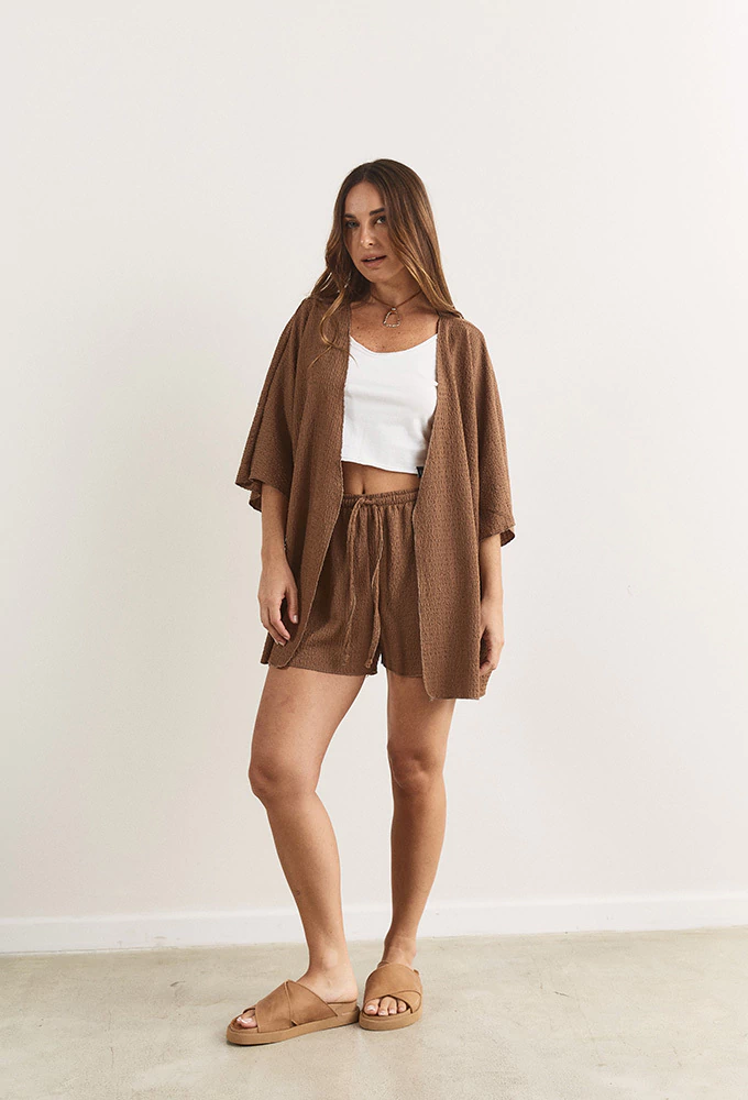 Descubrí el Kimono Bruselas, una prenda de fabricación propia que combina comodidad y estilo. Confeccionado en bambula, es ancho, liviano y fresco, perfecto para el verano. Ideal para lucir en la playa o para complementar tus looks diarios con un toque relajado y sofisticado. Su diseño cómodo y su tela transpirable te acompañan en cada momento, aportando frescura y elegancia.
